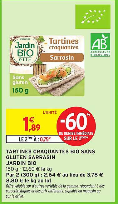 Découvrez l'offre de Tartines Craquantes Bio Sans Gluten Sarrasin chez Intermarché Hyper! Cette offre fantastique est maintenant disponible dans le nouveau catalogue de Intermarché Hyper. Profitez de cette occasion et économisez considérablement sur votre achat.