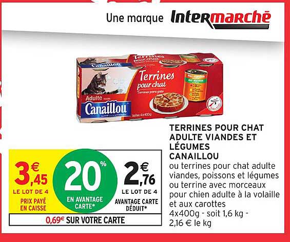Offre de Terrines Pour Chat Adulte Viandes Et Légumes Canaillou chez Intermarché Hyper