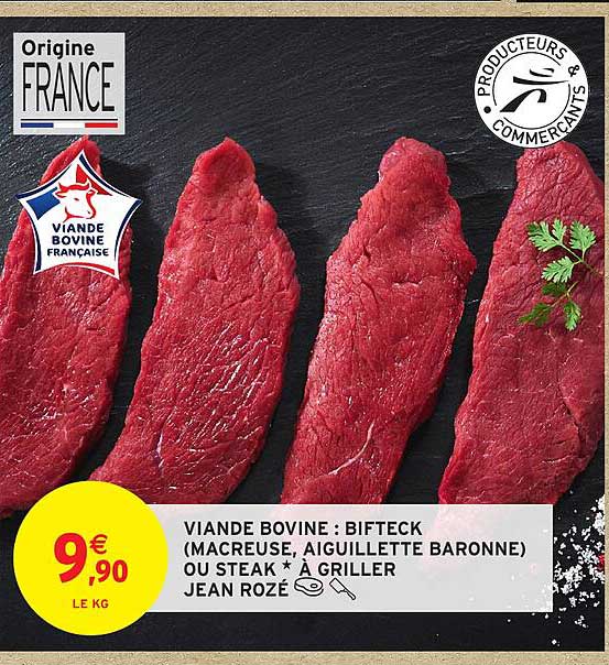 Offre de Viande Bovine : Bifteck (Macreuse, Aiguillette Baronne) Ou Steak * À Griller Jean Rozé chez Intermarché Hyper