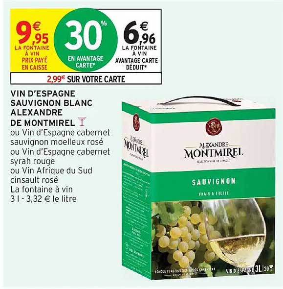 Découvrez l'offre de Vin D'espagne Sauvignon Blanc Alexandre De Montmirel chez Intermarché Hyper! Cette offre fantastique est maintenant disponible dans le nouveau catalogue de Intermarché Hyper. Profitez de cette occasion et économisez considérablement sur votre achat.