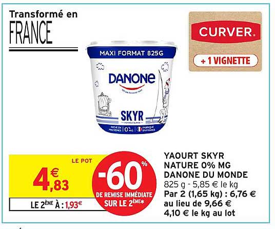 Découvrez la superbe offre de Yaourt Skyr Nature 0% Mg Danone Du Monde dans le nouveau catalogue de Intermarché Hyper. En plus de cette offre, vous trouverez de nombreuses autres réductions attrayantes. Vous pouvez facilement commander le Yaourt Skyr Nature 0% Mg Danone Du Monde en ligne via le site web de Intermarché Hyper ou l'acheter dans un magasin près de chez vous.
