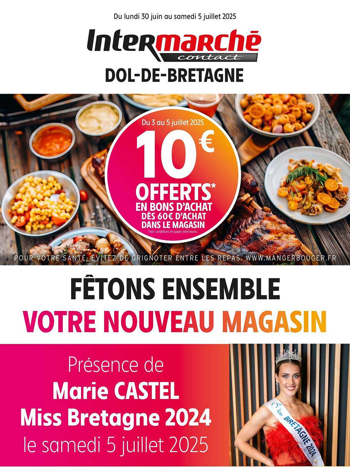Découvrez dès maintenant la offre 10€ OFFERTS* EN BONS D'ACHAT DÈS 60€ D'ACHAT DANS LE MAGASIN dans le catalogue de Intermarché. Cette offre est valable du 30/06/2025 au 05/07/2025.