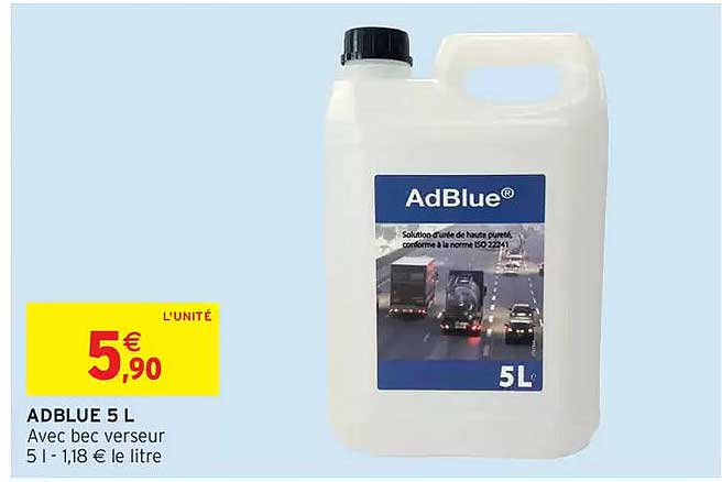 Découvrez l'offre de Adblue 5 L chez Intermarché! Cette offre fantastique est maintenant disponible dans le nouveau catalogue de Intermarché. Profitez de cette occasion et économisez considérablement sur votre achat.