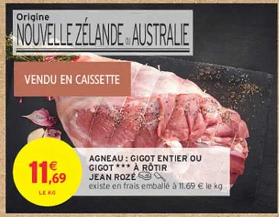 Si vous recherchez une viande de qualité pour vos repas en famille ou entre amis, ne manquez pas cette offre exceptionnelle sur le gigot d'agneau. Proposé à seulement 11,69€ le kg, ce gigot entier ou gigot *** à rôtir vous permettra de savoureux moments autour de la table. Une belle occasion de découvrir ou redécouvrir les délices de la viande d'agneau venant directement de Nouvelle-Zélande ou d'Australie !
