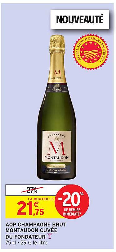 Offre de Aop Champagne Brut Montaudon Cuvée Du Fondateur chez Intermarché