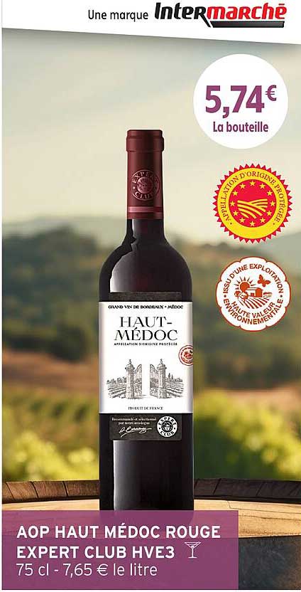 Découvrez dès maintenant la offre AOP HAUT MÉDOC ROUGE EXPERT CLUB HVE3 dans le catalogue de Intermarché. Cette offre est valable du 23/09/2025 au 29/03/2026.