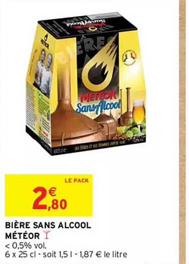 Offre de Bière Sans Alcool Météor chez Intermarché