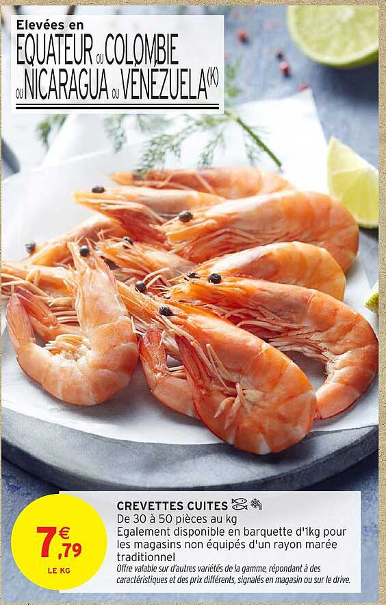 Découvrez l'offre de Crevettes Cuites chez Intermarché! Cette offre fantastique est maintenant disponible dans le nouveau catalogue de Intermarché. Profitez de cette occasion et économisez considérablement sur votre achat.