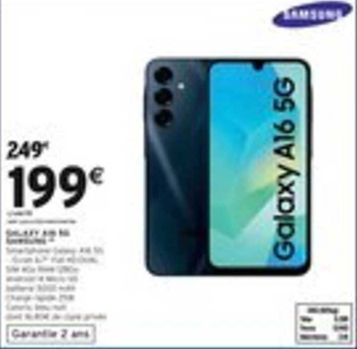 Le Galaxy A16 5G de Samsung est un smartphone qui allie performance et accessibilité. Disponible à un prix réduit, il vous permet de profiter de la technologie 5G sans vous ruiner. Que vous soyez amateur de jeux, passionné de photographie ou utilisateur quotidien, cet appareil saura répondre à vos besoins.