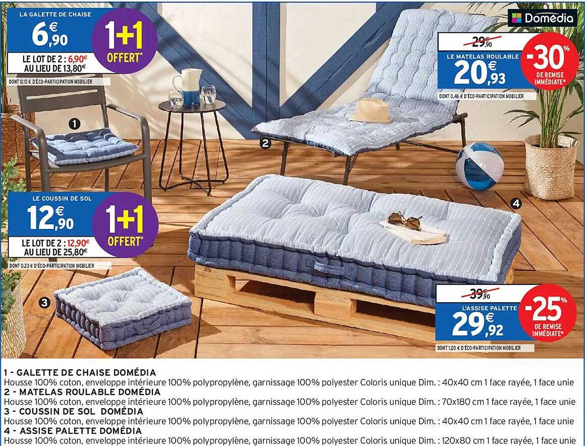 Offre de La Galette De Chaise Domédia Le Coussin De Sol Le Matelas Roulable Domédia L'assise Palette chez Intermarché