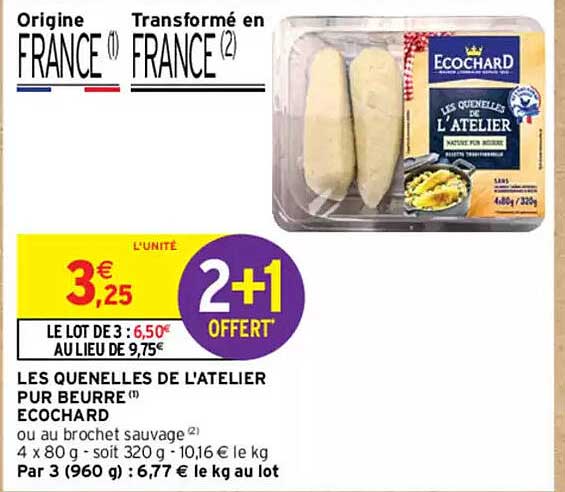 Offre de Les Quenelles De L'atelier Pur Beurre (1) Ecochard chez Intermarché