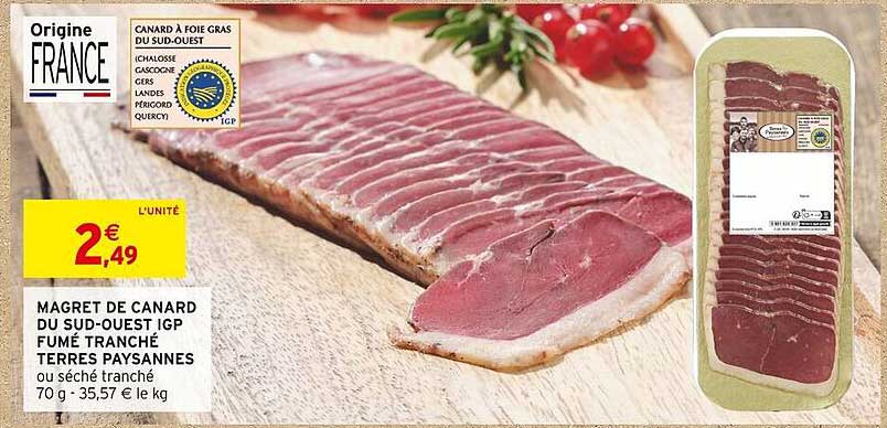 Offre de Magret De Canard Du Sud-Ouest Igp Fumé Tranché Terres Paysannes chez Intermarché
