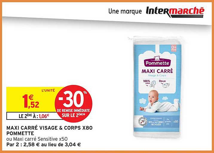 Découvrez l'offre de Maxi Carré Visage & Corps X80 Pommette chez Intermarché! Cette offre fantastique est maintenant disponible dans le nouveau catalogue de Intermarché. Profitez de cette occasion et économisez considérablement sur votre achat.