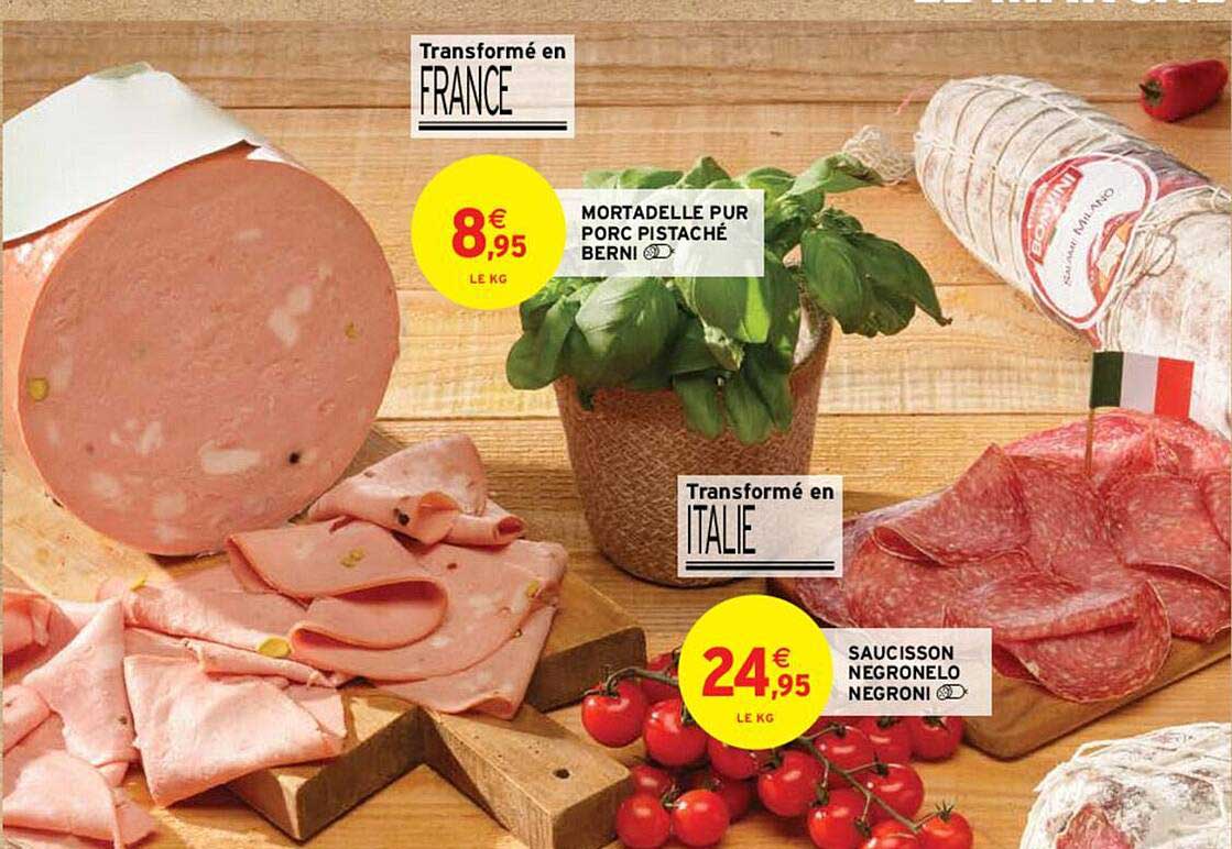Découvrez l'offre de Mortadelle Pur Porc Pistaché Berni Saucisson Negronelo Negroni chez Intermarché! Cette offre fantastique est maintenant disponible dans le nouveau catalogue de Intermarché. Profitez de cette occasion et économisez considérablement sur votre achat.