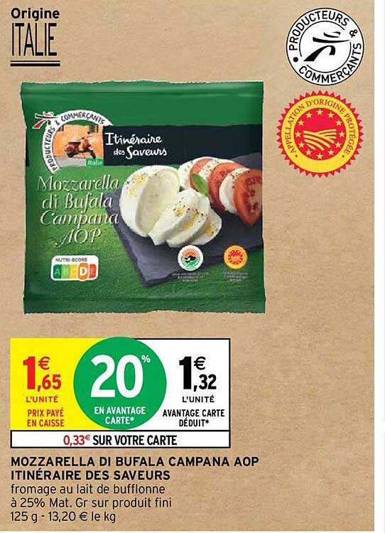 Offre de Mozzarella Di Bufala Campana Aop Itinéraire Des Saveurs chez Intermarché
