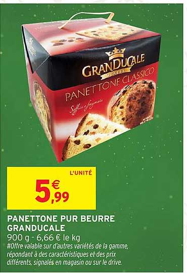 Découvrez l'offre de Panettone Pur Beurre Grandducale chez Intermarché! Cette offre fantastique est maintenant disponible dans le nouveau catalogue de Intermarché. Profitez de cette occasion et économisez considérablement sur votre achat.
