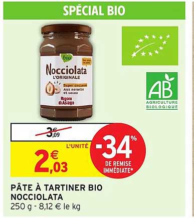 Découvrez l'offre de Pâte À Tartiner Bio Nocciolata chez Intermarché! Cette offre fantastique est maintenant disponible dans le nouveau catalogue de Intermarché. Profitez de cette occasion et économisez considérablement sur votre achat.