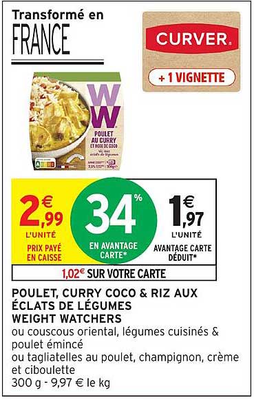 Offre de Poulet, Curry Coco & Riz Aux Éclats De Légumes Weight Watchers chez Intermarché