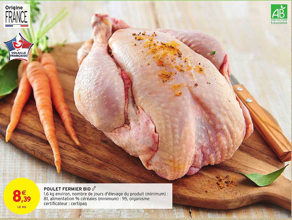 Découvrez la superbe offre de Poulet Fermier Bio dans le nouveau catalogue de Intermarché. En plus de cette offre, vous trouverez de nombreuses autres réductions attrayantes. Vous pouvez facilement commander le Poulet Fermier Bio en ligne via le site web de Intermarché ou l'acheter dans un magasin près de chez vous.