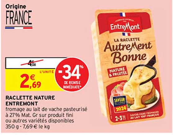 Découvrez dès maintenant la offre RACLETTE NATURE ENTREMONT dans le catalogue de Intermarché. Cette offre est valable du 01/10/2024 au 13/10/2024.
