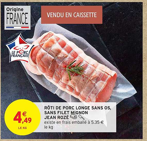 Offre de Rôti De Porc Longe Sans Os, Sans Filet Mignon Jean Rozé chez Intermarché