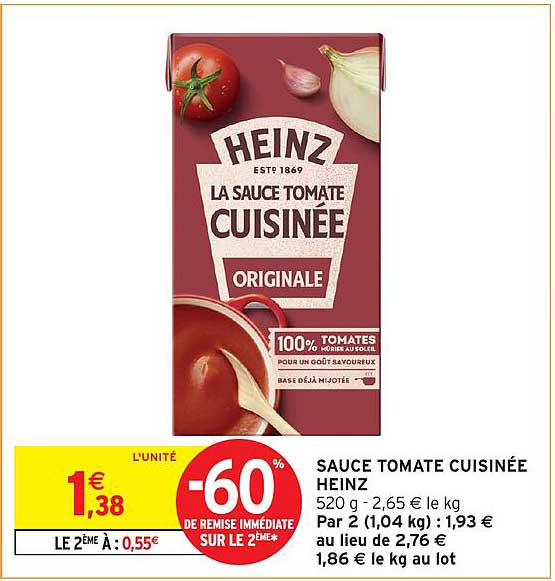 Offre de Sauce Tomate Cuisinée Heinz chez Intermarché