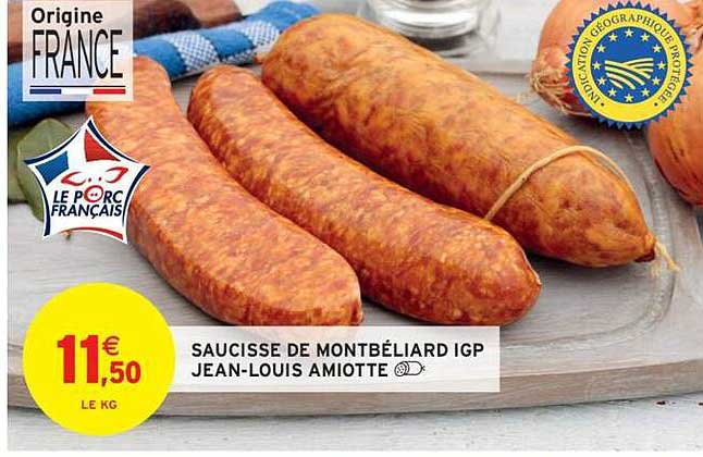 La Saucisse de Montbéliard IGP Jean-Louis Amiotte est une véritable spécialité française qui ravira tous les amateurs de charcuterie. Avec son goût riche et savoureux, elle est idéale pour vos repas en famille ou entre amis. Profitez de cette offre exclusive valable du 30 septembre au 5 octobre 2025, et faites plaisir à vos proches avec ce délice régional !