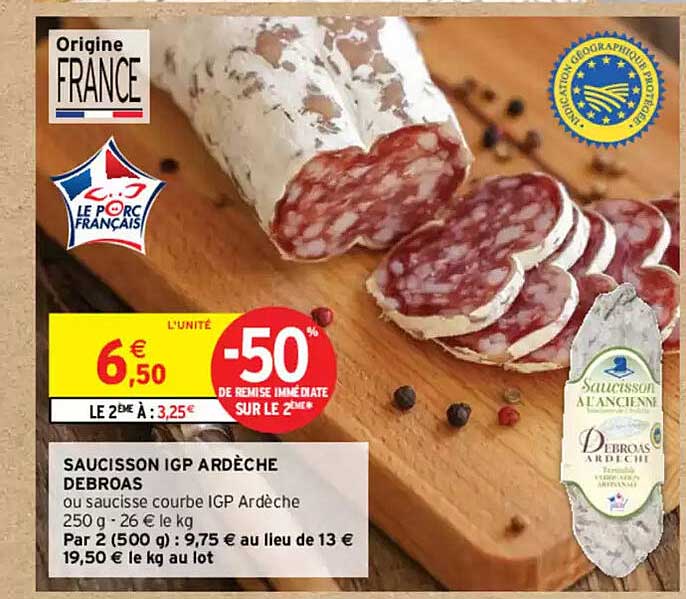 Découvrez l'offre de Saucisson Igp Ardèche Debroas chez Intermarché! Cette offre fantastique est maintenant disponible dans le nouveau catalogue de Intermarché. Profitez de cette occasion et économisez considérablement sur votre achat.