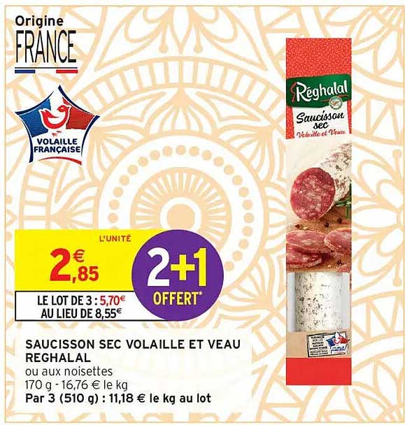 Offre de Saucisson Sec Volaille Et Veal Reghalal chez Intermarché