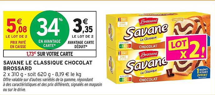 Découvrez dès maintenant la offre SAVANE LE CLASSIQUE CHOCOLAT BROSSARD dans le catalogue de Intermarché. Cette offre est valable du 14/10/2025 au 26/10/2025.