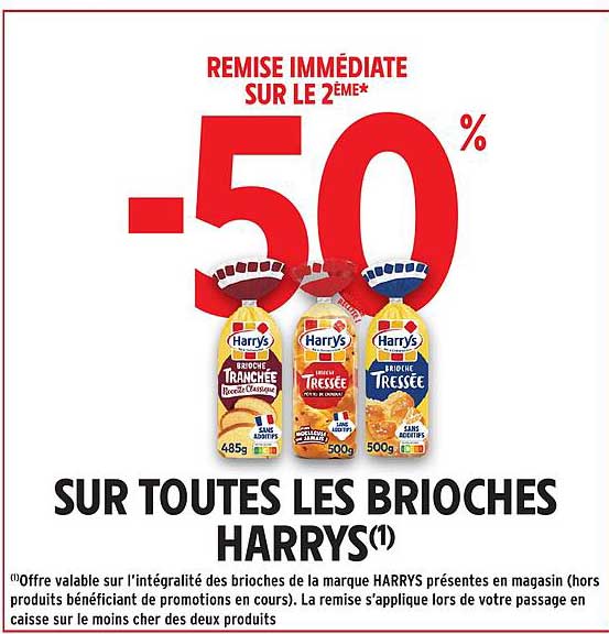 Avec cette offre, le prix de votre deuxième produit sera réduit de moitié. C'est une réelle opportunité pour vous faire plaisir tout en économisant ! Ne ratez pas cette chance de découvrir (ou redécouvrir) les brioches HARRYS au meilleur prix.