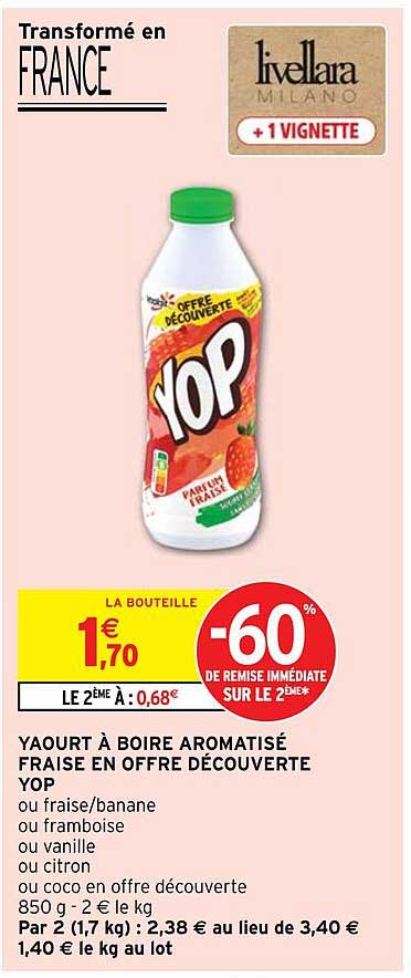 Offre de Yaourt À Boire Aromatisé Fraise En Offre Découverte Yop chez Intermarché