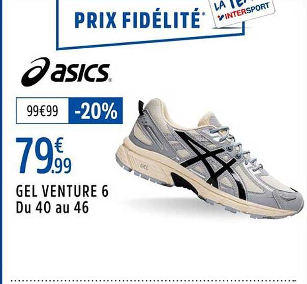 Découvrez la superbe offre de Gel Venture 6 dans le nouveau catalogue de Intersport. En plus de cette offre, vous trouverez de nombreuses autres réductions attrayantes. Vous pouvez facilement commander le Gel Venture 6 en ligne via le site web de Intersport ou l'acheter dans un magasin près de chez vous.