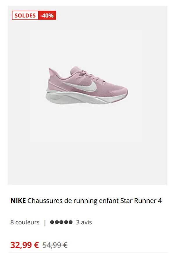 Offre de Nike Chaussures De Running Enfant Star Runner 4 chez Intersport
