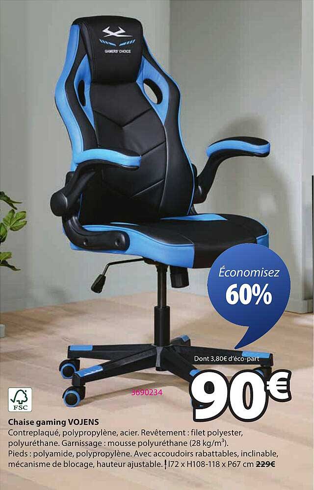 Le prix de cette chaise est de 90€, au lieu de 229€ habituellement. Avec une économie de 60€, vous profitez d'un excellent rapport qualité-prix. Cette offre vous permet d'améliorer votre expérience de jeu tout en restant dans votre budget.