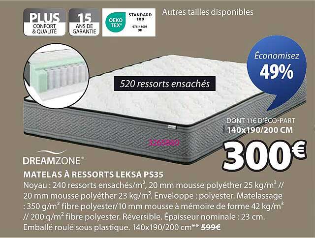 Découvrez le Dreamzone Matelas À Ressorts Leksa Ps35