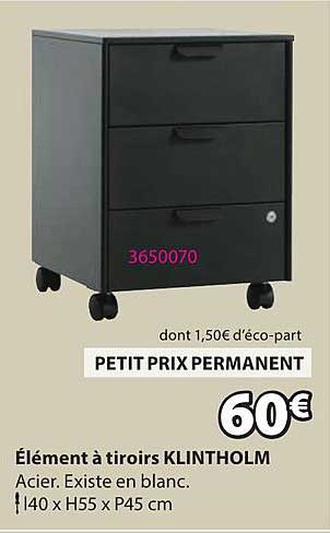 Découvrez dès maintenant la offre Élément à tiroirs KLINTHOLM dans le catalogue de JYSK. Cette offre est valable du 15/07/2025 au 21/07/2025.