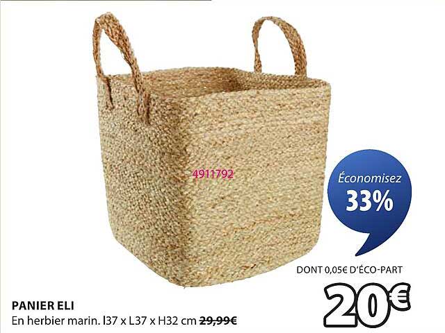Découvrez la superbe offre de Panier Eli dans le nouveau catalogue de JYSK. En plus de cette offre, vous trouverez de nombreuses autres réductions attrayantes. Vous pouvez facilement commander le Panier Eli en ligne via le site web de JYSK ou l'acheter dans un magasin près de chez vous.