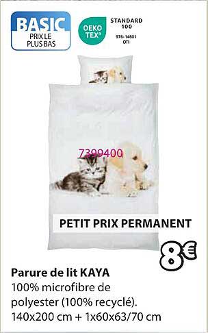 Découvrez la parure de lit KAYA, un choix parfait pour égayer vos nuits ! Avec son design accueillant mettant en scène de adorables chiots et chatons, cette parure saura séduire petits et grands. Fabriquée en microfibre de polyester 100% recyclé, elle allie confort et respect de l'environnement. Profitez de cette offre exceptionnelle sur cette page, valable du 15 au 21 juillet 2025.