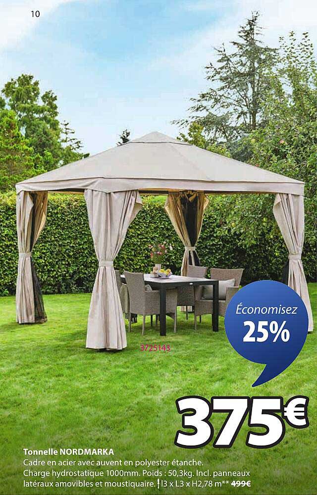 Découvrez dès maintenant la offre Tonnelle NORDMARKA dans le catalogue de JYSK. Cette offre est valable du 15/07/2025 au 21/07/2025.