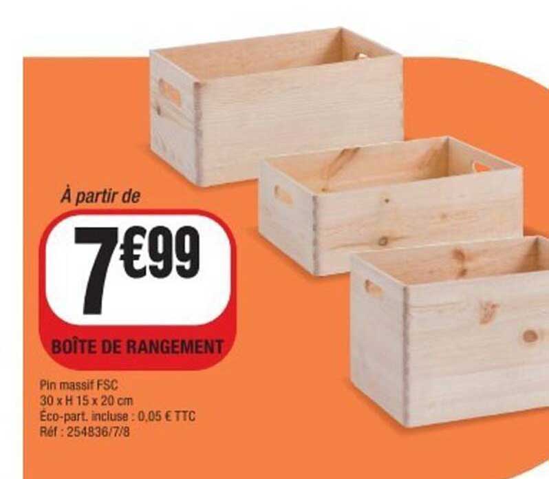 Vous cherchez une solution de rangement pratique et élégante ? Ne cherchez plus ! Les boîtes de rangement en pin massif de La Foir'Fouille sont l'option idéale pour organiser votre espace tout en ajoutant une touche naturelle à votre décoration. Avec cette offre à partir de 7€99, il n'a jamais été aussi simple de garder son intérieur en ordre.