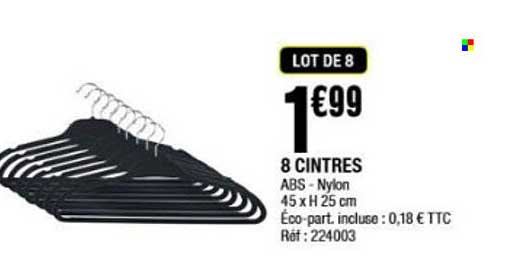 Découvrez un indispensable pour votre garde-robe avec ce lot de 8 cintres en nylon d'une qualité exceptionnelle. Parfait pour organiser vos vêtements tout en leur assurant un soutien optimal, ce lot vous offre une solution pratique et économique pour votre rangement. Ne manquez pas cette occasion de simplifier votre quotidien avec un produit de qualité à petit prix.