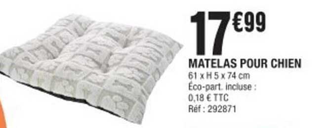 Vous cherchez le meilleur confort pour votre compagnon à quatre pattes ? Ne cherchez pas plus loin ! Le matelas pour chien proposé par La Foir'Fouille est l'accessoire idéal pour assurer des nuits paisibles et reposantes à votre fidèle ami. Avec des dimensions de 61 x H 5 x 74 cm, il s'adapte parfaitement à toutes les races de chiens et leurs habitudes de sommeil.