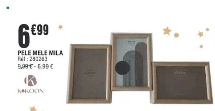Vous recherchez un moyen astucieux pour exposer vos souvenirs et vos photos ? La Foir'Fouille vous propose une offre exceptionnelle sur le cadre PELE MELE MILA, un ensemble de trois cadres élégants qui ajouteront une touche personnelle à votre décoration intérieure. Disponible ici pour seulement 6,99 €, ce produit est un excellent moyen de mettre en valeur vos moments précieux à un prix immanquable.