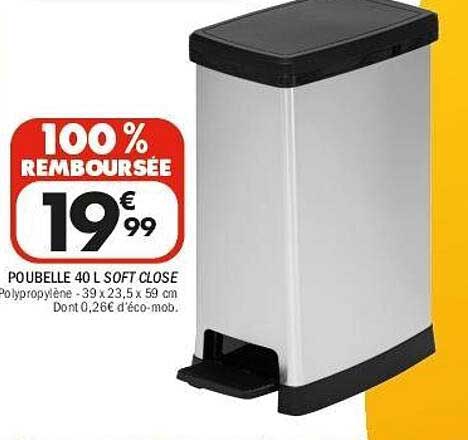 Vous cherchez une solution pratique et élégante pour la gestion des déchets à la maison ? La poubelle 40 L Soft Close proposée par La Foir'Fouille est un choix idéal ! Avec sa capacité généreuse et son design moderne, elle saura s'intégrer parfaitement à votre intérieur tout en apportant une touche de sophistication.