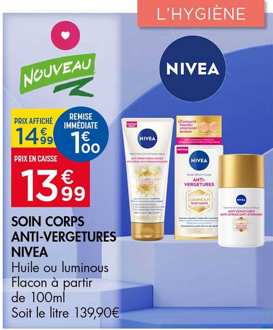 Découvrez l'offre de Soin Corps Anti-Vergetures Nivea chez Leader Price! Cette offre fantastique est maintenant disponible dans le nouveau catalogue de Leader Price. Profitez de cette occasion et économisez considérablement sur votre achat.