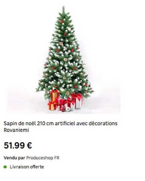 Découvrez la superbe offre de Sapin De Noël 210 Cm Artificiel Avec Décorations Rovaniemi dans le nouveau catalogue de Leroy Merlin. En plus de cette offre, vous trouverez de nombreuses autres réductions attrayantes. Vous pouvez facilement commander le Sapin De Noël 210 Cm Artificiel Avec Décorations Rovaniemi en ligne via le site web de Leroy Merlin ou l'acheter dans un magasin près de chez vous.