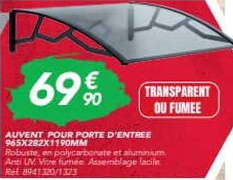 Découvrez dès maintenant la offre AUVENT POUR PORTE D’ENTRÉE dans le catalogue de Les Briconautes. Cette offre est valable du 28/05/2025 au 31/05/2025.
