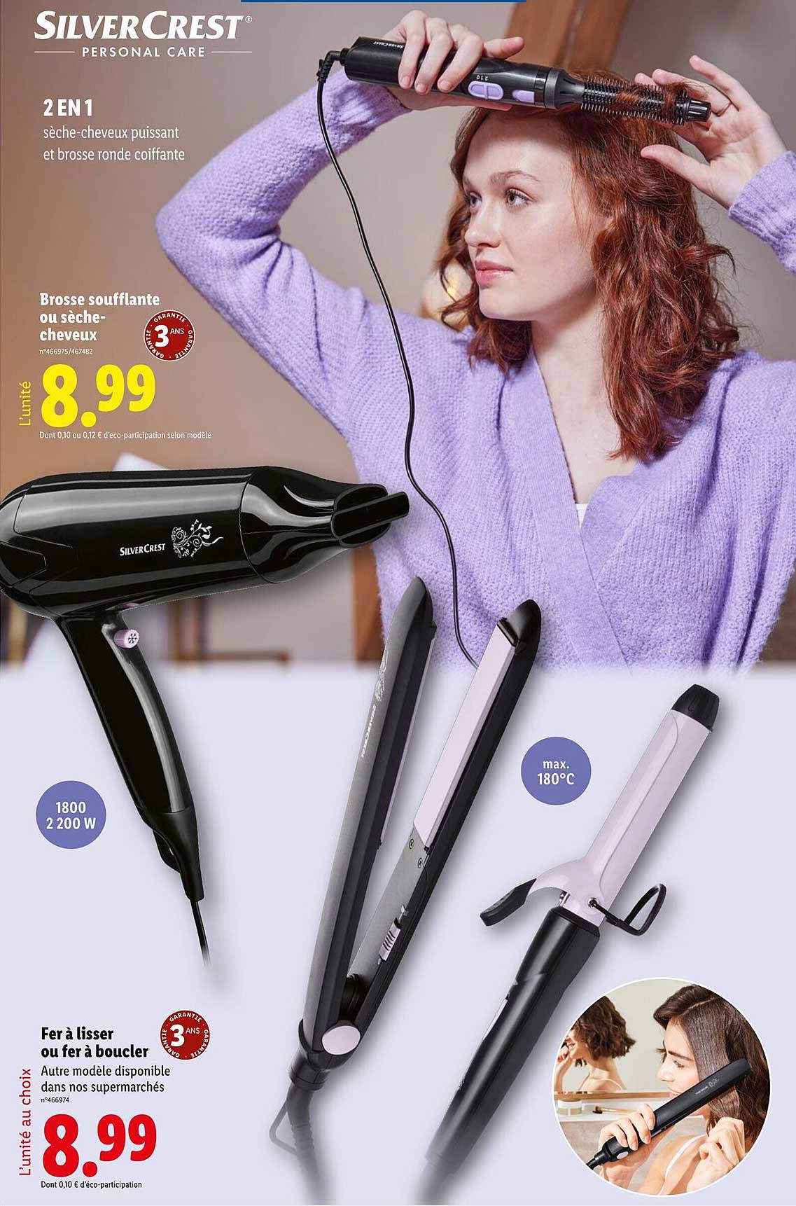 Découvrez dès maintenant la offre 2 EN 1 sèche-cheveux puissant et brosse ronde coiffeuse dans le catalogue de Lidl. Cette offre est valable du 10/03/2025 au 13/03/2025.