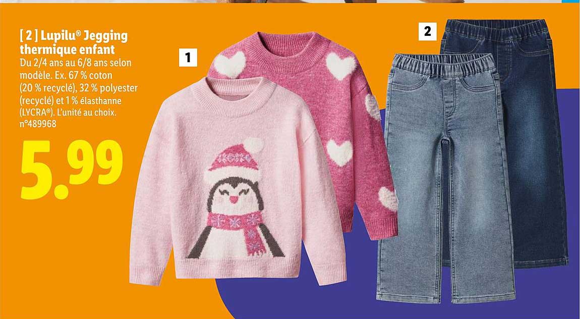 Découvrez dès maintenant la offre [ 2 ] Lupilu® Jegging thermique enfant dans le catalogue de Lidl. Cette offre est valable du 16/10/2025 au 20/10/2025.